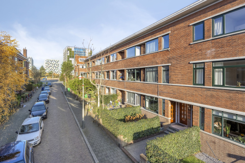 - Balkon op het westen met zicht op het Thorbeckeplein, de Hooftstraat en de Van Mandersloostraat;